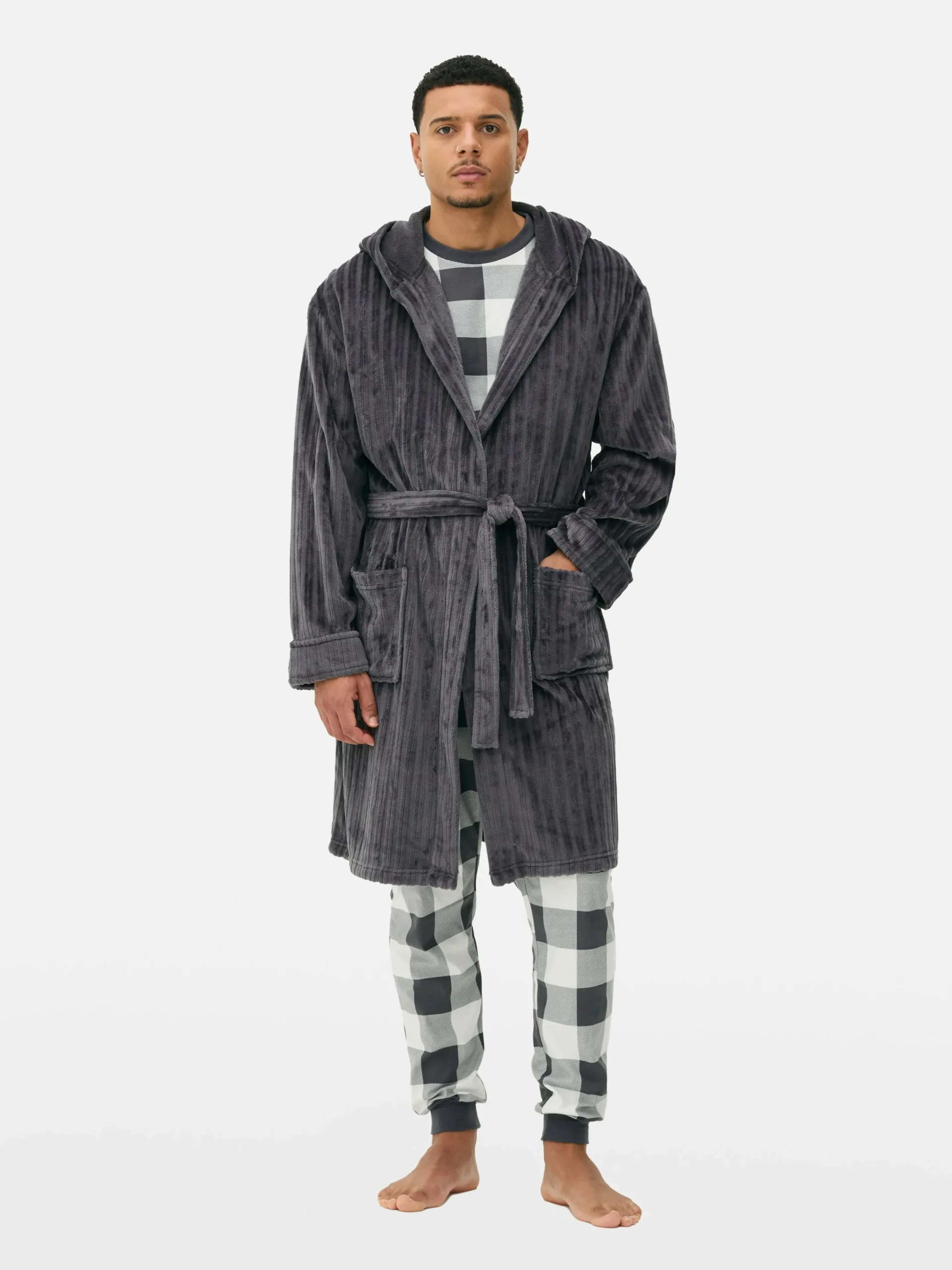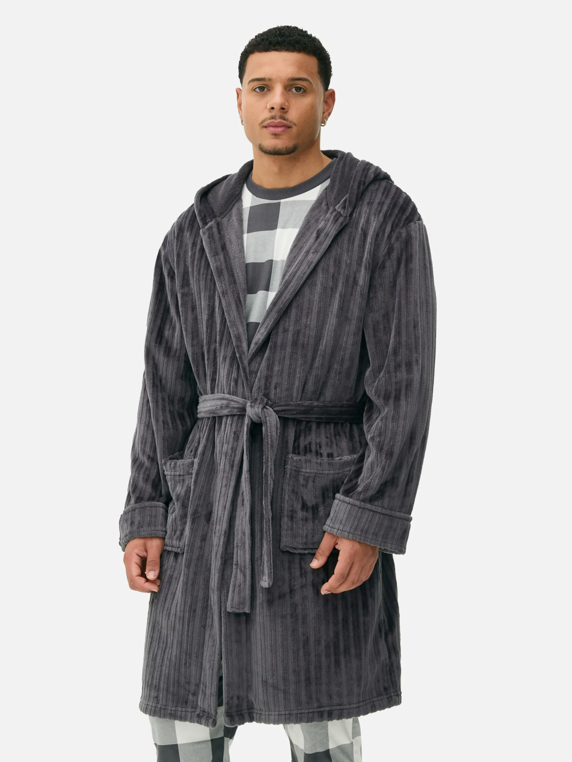 Clearance Gestreifter Bademantel Mit Ausgebranntem Effekt Herren Schlafanzüge